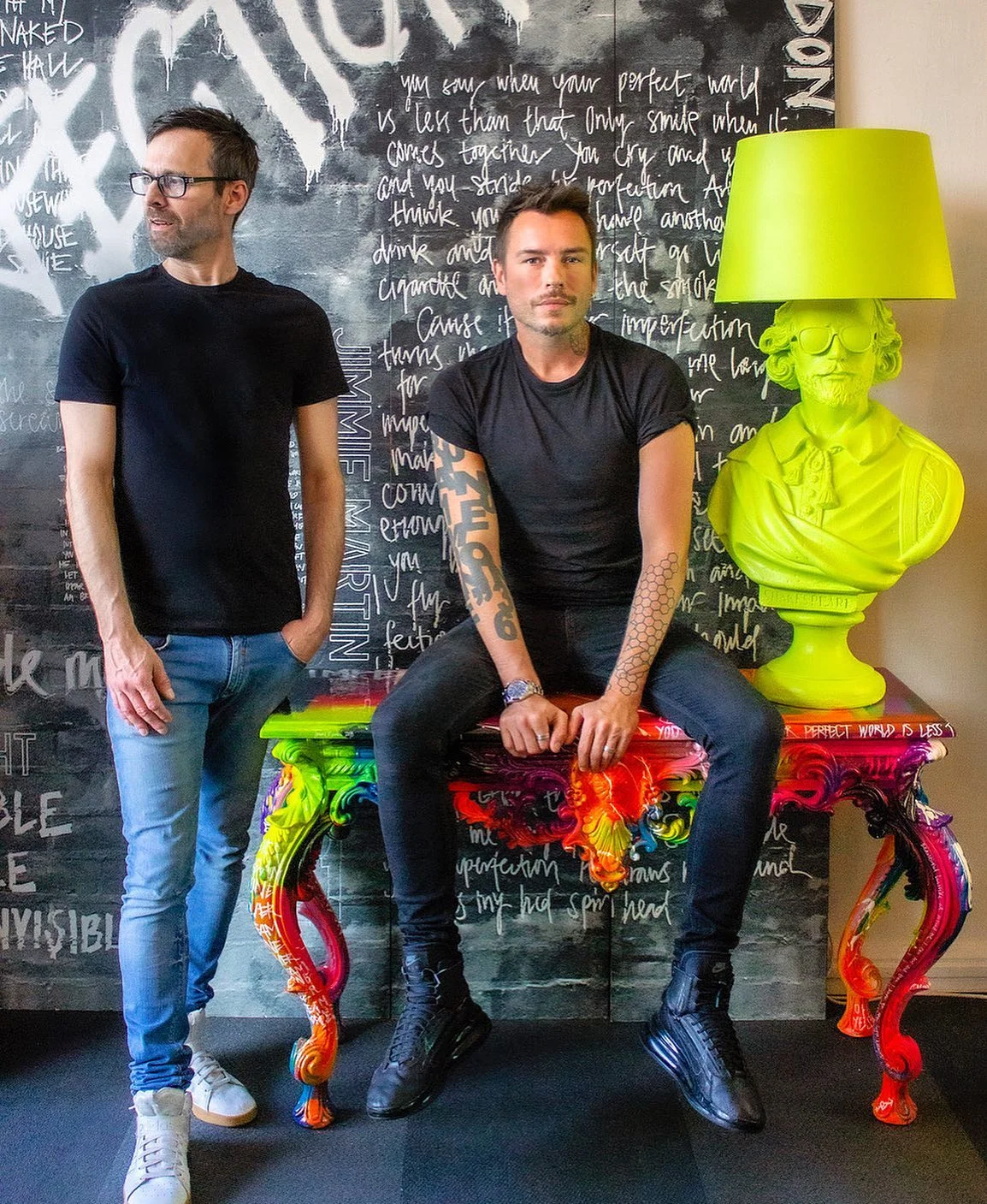 Jimmie Martin se caracteriza por su estilo ecléctico, combina elementos del arte pop, colores extravagantes, graffitis, recuperan y reinventan muebles antiguos con un toque moderno.